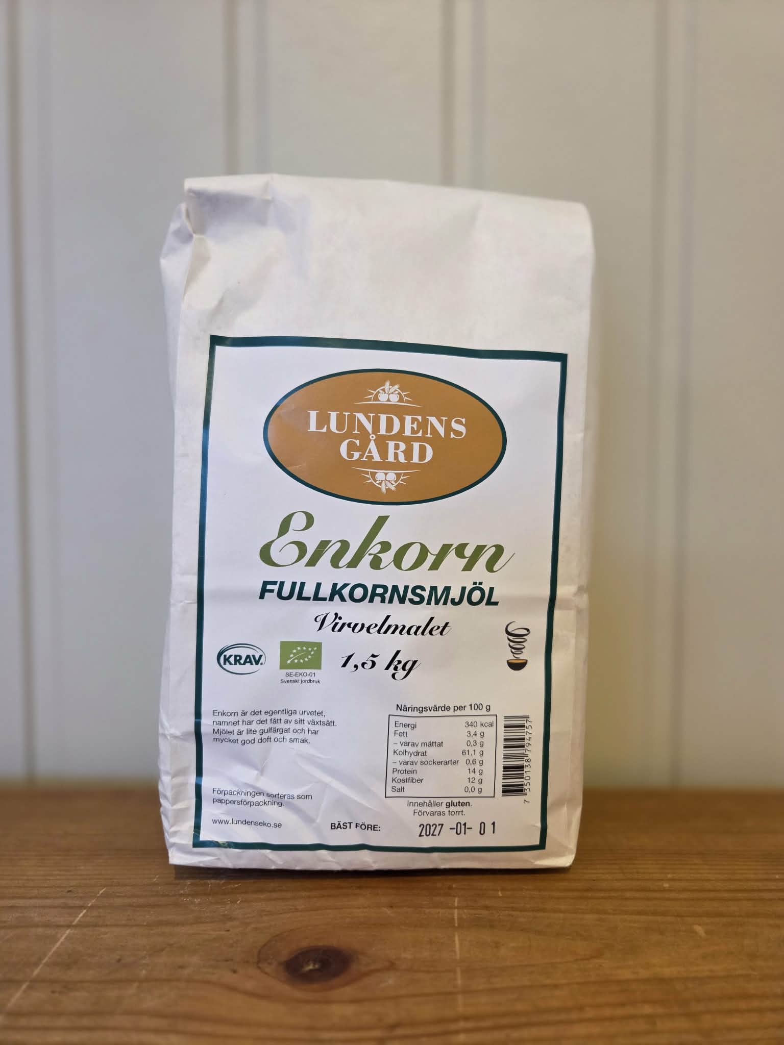 Smakrikt och otroligt gott, finmalet fullkornsmjöl från sädeslaget Enkorn som tillhör vete.